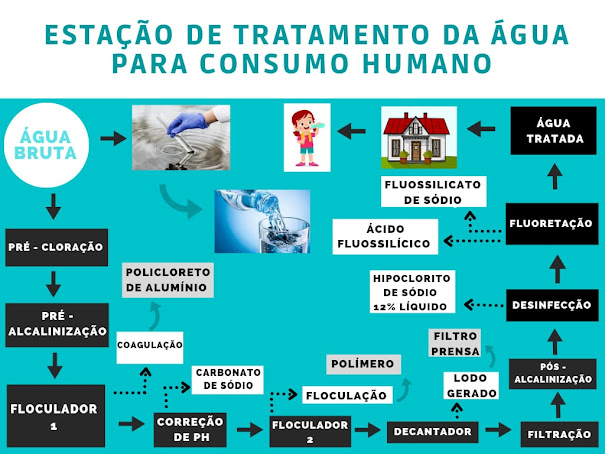 Para eliminar componentes que podem ser prejudiciais para a saúde humana, a água precisa passar por uma Estação de Tratamento de Água (ETA) antes de ir para as redes de distribuição. Apenas no caso de poços subterrâneos, a adição de cloro já é suficiente para proporcionar o tratamento. Na ETA, uma série de etapas com diferentes procedimentos são realizados, o que possibilita a obtenção de água potável a partir da água bruta. Nem sempre todos eles são necessários. A estrutura do tratamento é moldada conforme a qualidade dos mananciais. E por mais que a água chegue tratada nas casas das pessoas, é recomendável que seja filtrada antes do consumo.